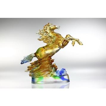 台灣玻璃館推出<奔騰>藝品,琉璃 藝品 採用 精細 的手法 製作,送禮 以及 店面招財 擺飾 的好選擇。 脫臘鑄造法,琉璃工法精細,襯托出顏色上的美感,限時優惠$13500元