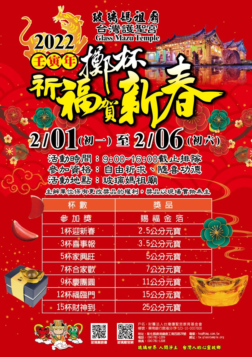2022 2/1~2/6活動時間:每日09:00~16:00活動地點:玻璃媽祖廟歡迎自由祈求、隨喜功德